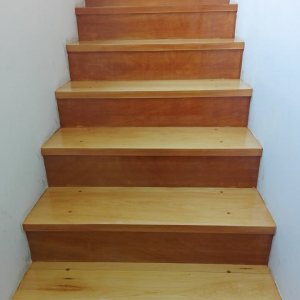 Escalera de madera de wuatambu y Piso de roble americano
